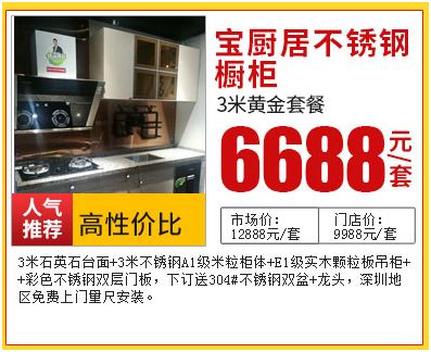 总之,希望大家在选购橱柜的时候一定要擦亮押金,选择质量有保证的品牌。看完这篇如果您还不知道如何选择的话,小编给你推荐宝厨居橱柜和斯沃德不锈钢厨柜,两个都是口碑非常不错的知名品牌,4月29-5月1日,宝厨居橱柜、斯沃德不锈钢厨柜厂家直供价,超低折扣回馈新老客户,想买橱柜的业主朋友千万别错过了。